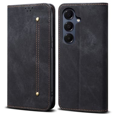 Koe tyylin ja toimivuuden täydellinen yhdistelmä tässä retrofarkkukuorisessa suojakuoressa. Valmistettu ensiluokkaisesta PU-nahasta ja pehmeästä TPU:sta, mikä takaa miellyttävän tuntuman. Älykkään korttipaikkojen ja sivutaskun ansiosta voit helposti kuljettaa henkilöllisyystodistusta, luottokortteja ja käteistä mukanasi. Sisäänrakennettu jalustatoiminto on täydellinen videokeskusteluihin ja elokuvien katseluun, ja magneettinen suljenta suojaa näyttöäsi. Suojakotelo suojaa puhelintasi iskuilta ja naarmuilta.