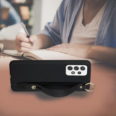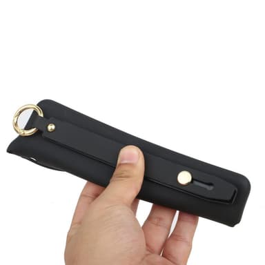 Ohut TPU-kuori, jonka takana on hihna paremman pidon takaamiseksi. Kultaiset metalliset yksityiskohdat.