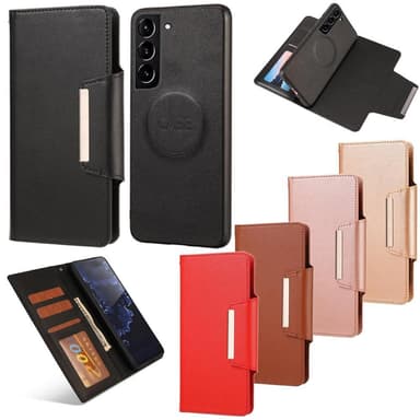 PU-nahkainen lompakkokotelo, jossa on magneettisesti irrotettava sisäkuori.