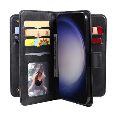 PU-nahkainen lompakkokotelo modernilla muotoilulla, jossa on yhteensä 10 lokeroa.