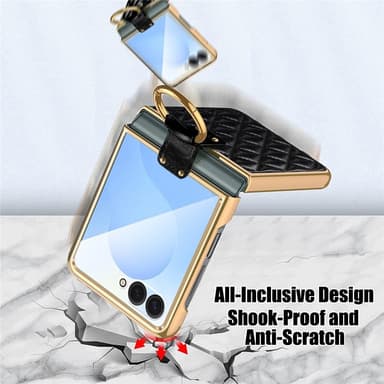 Tämä tyylikäs puhelinkotelo yhdistää käytännöllisyyden ja eleganssin tikkikuvioidulla PU-nahalla ja kestävällä PC-rakenteella. Kohokuvioitu vinoneliökuvio antaa hienostuneen ilmeen, ja takana oleva sormusrengas tarjoaa varman otteen ja helpon käsittelyn. Kotelo tukee langatonta latausta, joten sitä ei tarvitse irrottaa latauksen ajaksi. Mukana tulee karkaistusta lasista valmistettu suojakalvo ulkonäytölle, joka suojaa naarmuilta ja iskuilta.