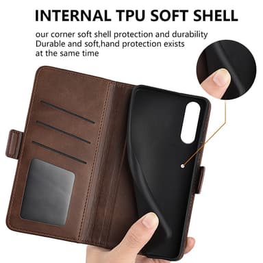 Lompakkokotelo premium PU-nahkaa, jossa on yhteensä 4 lokeroa.