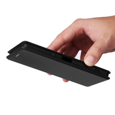Lompakkokotelo, jossa on hiilikuituinen ulkonäkö ja erittäin pehmeä kangas sisäpuolella.