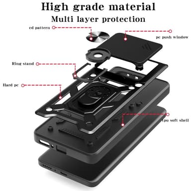 Koe äärimmäistä suojaa ja toiminnallisuutta Armor Metallinen rengas -kamerasuojuksella. Tämä suojakuori on suunniteltu antamaan puhelimellesi elegantin ulkonäön samalla, kun se suojaa sitä päivittäisiltä kolhuilta. Sisäänrakennettu pyörivä rengas helpottaa puhelimen käyttöä yhdellä kädellä ja katselukulman säätöä, ja magneettisen pidikkeen yhteensopivuus varmistaa vakaan sijoituksen autossa.