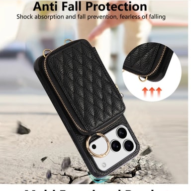 Kätevä korttipaikka: Tässä tyylikkäässä iPhone 17 Pron kanssa yhteensopivassa puhelinkotelossa on sisäänrakennettu korttipaikka, jonka avulla voit kätevästi kuljettaa tärkeitä kortteja, kuten henkilökortteja, luottokortteja tai matkalippuja. Sinun ei tarvitse kantaa erillistä lompakkoa pidä arvoesineesi turvassa ja helposti saatavilla. Korttipaikka on suunniteltu pitämään korttisi tiukasti paikallaan estäen niitä putoamasta liikkeellä ollessasi. Tämä ominaisuus on täydellinen niille, jotka haluavat matkustaa kevyesti tai virtaviivaistaa jokapäiväistä kantamistaan. Nauti siitä, että tärkeät korttisi ovat aina käden ulottuvilla tämän toiminnallisen ja muodikkaan puhelinkotelon avulla.