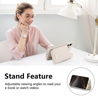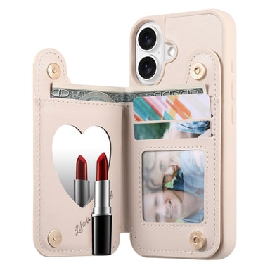 • Tyylikäs lompakkokotelo yhteensopiva iPhone 17 Air -puhelimen kanssa, jossa korttipidike, jalusta ja meikkipeili Beige
