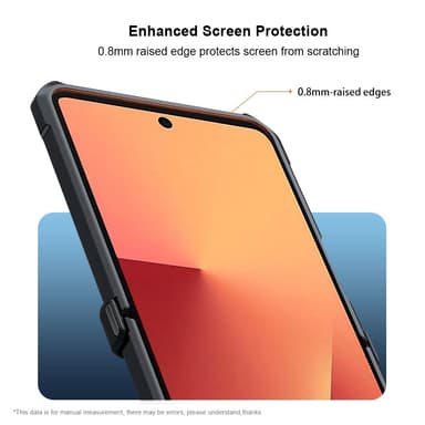 Tämä hybridikotelo yhdistää kovan akryylin ja pehmeän TPU-kehyksen tarjoten erinomaista suojaa pudotuksia vastaan. Erityisesti suunniteltu saranasuoja lisää kestävyyttä ja suojaa taittomekanismia kulumiselta. Sisäänrakennettu airbag-tekniikka vähentää iskujen ja pudotusten vaikutusta, ja 0,8 mm korotetut reunat suojaavat sekä kameran linssiä että näyttöä. Mukana tuleva karkaistusta lasista valmistettu näytönsuoja tarjoaa lisäsuojaa naarmuja ja iskuja vastaan.