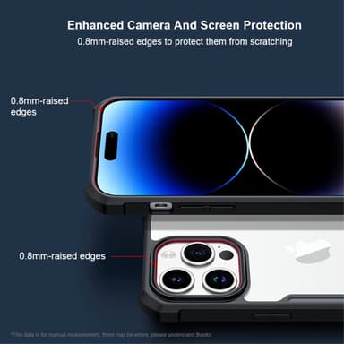 XUNDD-takakansi iPhone 15 Prolle törmäyksenkestävä akryyli+TPU-puhelinkotelo Matkapuhelimen suojakuori - musta Valmistettu TPU+-akryylimateriaalista, joustava ja kestävä Kevyt ja ohut, pehmeä eikä vahingoita konetta Kohotetut huulet näytön ja kameranTutustu ominaisuuksiin