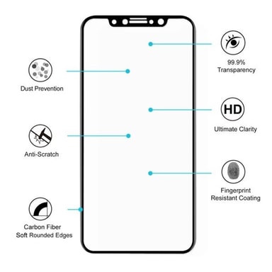 Suojaa matkapuhelintasi parhaalla mahdollisella tavalla karkaistua lasia olevalla näytönsuojalla. Tämä pakkaus sisältää 5 kpl matkapuhelimen suojaa, joka suojaa tehokkaasti näyttöäsi pölyltä, naarmuilta, sormenjäljiltä jne. ja siinä on 99% läpinäkyvyys, mikä tarjoaa äärimmäistä selkeyttä näytölle. Kehys on valmistettu hiilikuidusta 3D-teknologialla pehmeillä ja pyöreillä reunoilla. Tyylipuhdas suoja, joka sopii täydellisesti näyttöön ja on helposti irrotettavissa, kun et enää halua sitä.