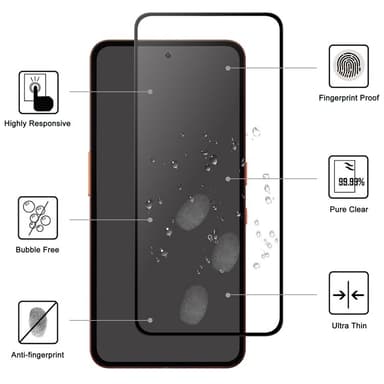 Saat optimaalisen näyttökokemuksen tällä korkealaatuisesta AGC-lasista valmistetulla näytönsuojalla. Superohut muotoilu tarjoaa korkean läpinäkyvyyden ja herkän kosketustuntuman. Mustat reunat suojaavat puhelintasi vaurioilta. 9H-kovuus tarjoaa varman räjähdyssuojan ja oleofobinen pinta estää tahroja ja sormenjälkiä.