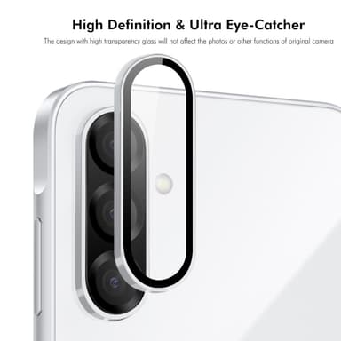 Suojaa kamerasi linssi(t) tällä vankalla metallirenkaalla. Alumiiniseoksesta ja 9H karkaistusta lasista valmistettu suoja tarjoaa parannettua kestävyyttä ja suojaa. Kirkas muotoilu säilyttää 99,9% valonläpäisyn, joten kuvasi ja videosi pysyvät terävinä.