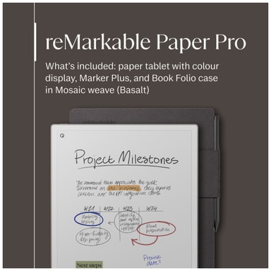 Tutustu reMarkable Paper Pro -E-ink-tablettiin, joka on uusin innovaatio digitaalisessa muistiinpanojen tekemisessä ja joka kuroo umpeen kuilun perinteisen paperin ja digitaalisen maailman välillä. 11,8 tuuman värillisellä E-ink-näytöllä varustettu reMarkable Paper Pro tarjoaa kirjoitus- ja lukukokemuksen, joka jäljittelee tarkasti paperin tuntua, mutta jota on parannettu modernilla teknologialla. Olitpa sitten ammattilainen, joka haluaa virtaviivaistaa työnkulkuaan, opiskelija, joka pyrkii järjestämään opintoja, tai luova taiteilija, joka haluaa luonnostella tien päällä, tämä tabletti on suunniteltu vastaamaan tarpeitasi ilman tyypillisen tabletin aiheuttamia häiriötekijöitä.