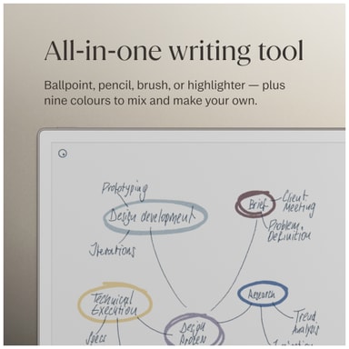 Vaihda hetkessä erilaisten kirjoitusvälineiden välillä kulloisenkin tehtävän mukaan. Kuulakärkikynän tarkkuudesta pensselin sujuvuuteen, Marker tarjoaa useita vaihtoehtoja, joita voi säätää yksinkertaisella napautuksella.