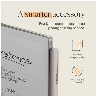 ReMarkable Paper Pro Marker Basic -stulyskynän avulla voit vapauttaa luovuutesi ja saavuttaa seuraavan tason tuottavuuden. Nauti edistyksellisestä muistiinpanojen laatimisesta ja luonnostelusta moitteettomalla tarkkuudella ja muunna käden liikkeet kauniiksi taideteoksiksi. Kynä kiinnittyy tablettiisi magneettisesti ja sen toiminta on paristovapaata (yhteensopiva vain reMarkable Paper Pro -tabletin kanssa - ei toimi muilla reMarkable-laitteilla).