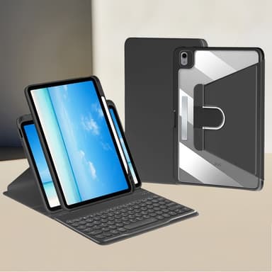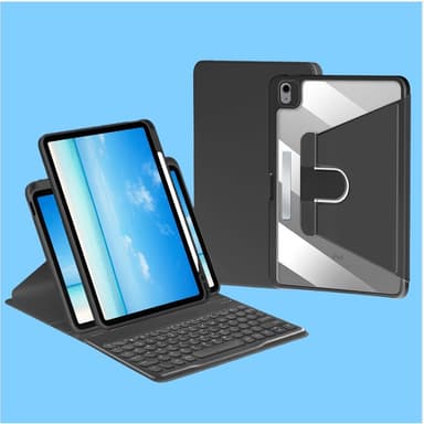 Parannettu tuottavuus: Muunna iPad 7./8./9. sukupolvi (10,2 tuumaa) monipuoliseksi työasemaksi tällä 360° kääntyvällä Bluetooth-näppäimistökotelolla. Irrotettava näppäimistö mahdollistaa mukavan kirjoittamisen, mikä parantaa tuottavuuttasi, olitpa sitten tekemässä asiakirjoja, sähköposteja tai luovia projekteja. Kääntyvä ominaisuus mahdollistaa saumattoman siirtymisen vaaka- ja pystytilan välillä, mukautuen erityistarpeisiisi. Koe kannettavan tietokoneen kaltainen käyttökokemus iPadillasi, mikä tekee siitä ihanteellisen opiskelijoille, ammattilaisille ja kaikille, jotka etsivät parannettua tehokkuutta liikkeellä ollessaan. Tämä näppäimistökotelo on yhteensopiva iPadin kanssa ja tarjoaa täydellisen yhdistelmän toiminnallisuutta ja siirrettävyyttä.
