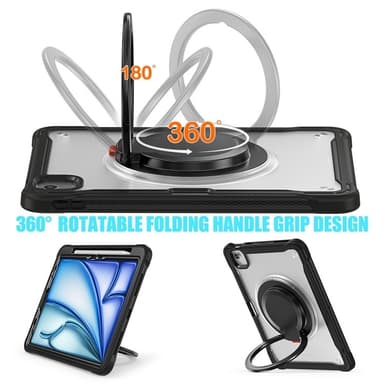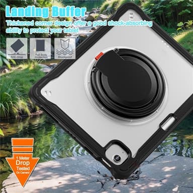 Tämä kestävä suojakuori tarjoaa erinomaisen suojan tabletille päivittäisessä käytössä. 360 astetta pyörivä kahva mahdollistaa laitteen ripustamisen mihin tahansa ja tarjoaa monipuoliset kantovaihtoehdot. Paksunnetut silikonikulmat vaimentavat iskuja tehokkaasti ja suojaavat pudotuksilta. Kaksikerroksinen rakenne yhdistää kestävän TPU-ulkopinnan ja kovan PC-sisäkuoren täydelliseen suojaan. Sisäänrakennettu jalusta tukee sekä vaaka- että pystyasentoa, mahdollistaen mukavan katselukulman. Sivussa oleva kynäpaikka pitää styluksen kätevästi saatavilla (stylus ei sisälly).