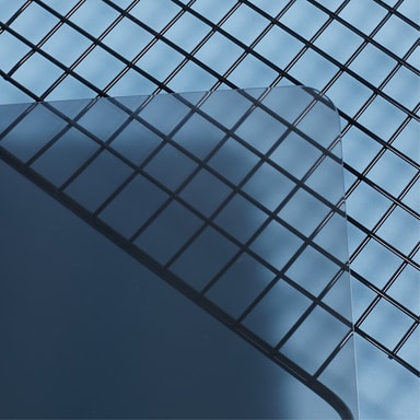 Karkaistusta lasista valmistettu yksityisyyden suoja. Kestävä ja naarmuuntumaton karkaistua lasia oleva näytönsuoja, jonka kovuus on 9H.
