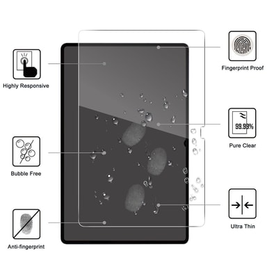 Tämä korkealaatuinen karkaistu lasi on kemiallisesti käsitelty kestävyyden ja kirkkauden parantamiseksi. Sen korkea läpinäkyvyys ja herkkä kosketustuntuma tarjoavat kristallinkirkkaan näkymän ja sulavan käyttökokemuksen. Turvallinen räjähdyssuojatoiminto estää lasia hajoamasta teräviksi paloiksi vaurion sattuessa. Oleofobinen pinnoite hylkii sormenjälkiä ja likaa, pitäen näytön puhtaana. Vahvuudestaan huolimatta lasi on vain 0,3 mm paksu ja siinä on sileät, kaarevat reunat miellyttävään käyttöön.