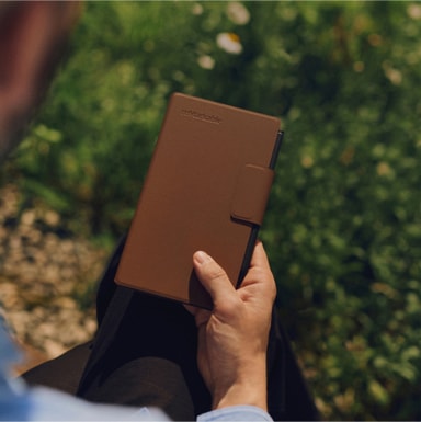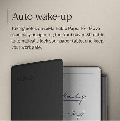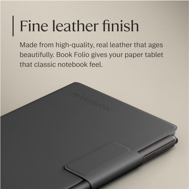Nahkainen reMarkable Paper Pro Move Premium Book Folio (musta) pitää paperitablettisi turvassa ja tyylikkäänä. Ensiluokkainen nahkasuojus kiinnittyy laitteeseesi magneettisesti ja tarjoaa herätys-/lepotoiminnon sekä merkintöjen säilytystilan.Tutustu ominaisuuksiin
