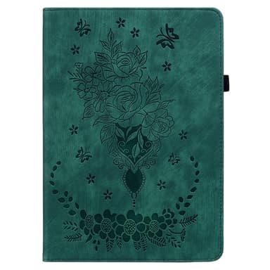 Samsung Galaxy Tab A11 Suojakotelo Ruusukuvioisella Kaiverruksella - Valmistettu PU-nahasta ja TPU-materiaalista, jotka tarjoavat vahvan kaksikerroksisen suojan arkipäivän kulumista, pudotuksia ja naarmuja vastaan.Tutustu ominaisuuksiin