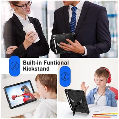 Tämä kestävä suojakuori on suunniteltu kestämään arjen rasituksia ja sopii täydellisesti lapsille. Valmistettu iskunkestävästä silikonista ja muovista, se peittää koko takapuolen ja reunat suojaten pudotuksilta ja iskuilta. Sisäänrakennettu tuki vapauttaa kädet lukemista, elokuvien katselua tai surffausta varten. Neljä vahvistettua kulmaa tarjoavat lisäturvaa, ja kuoressa on lisäksi kätevä kynäteline sekä olkahihna helppoa kuljettamista varten.