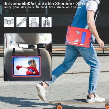 Tämä kestävä suojakuori on suunniteltu kestämään arjen rasituksia ja sopii täydellisesti lapsille. Valmistettu iskunkestävästä silikonista ja muovista, se peittää koko takapuolen ja reunat suojaten pudotuksilta ja iskuilta. Sisäänrakennettu tuki vapauttaa kädet lukemista, elokuvien katselua tai surffausta varten. Neljä vahvistettua kulmaa tarjoavat lisäturvaa, ja kuoressa on lisäksi kätevä kynäteline sekä olkahihna helppoa kuljettamista varten.