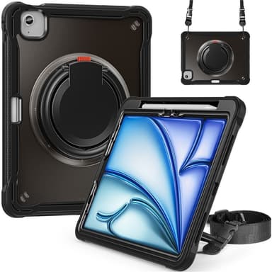 Tämä kestävä suojakuori yhdistää toiminnallisuuden ja suojan älykkääseen muotoiluun. 360 astetta pyörivä kahva mahdollistaa laitteen ripustamisen mihin tahansa, tarjoten monipuoliset kantovaihtoehdot. Paksunnetut silikonikulmat vaimentavat iskuja tehokkaasti ja suojaavat tablettia pudotuksilta ja kolhuilta. Kaksikerroksinen rakenne, jossa on kestävä TPU-kuori ja kova PC-sisäkuori, tarjoaa kattavan suojan. Sisäänrakennettu jalusta tukee sekä vaaka- että pystyasentoa, mahdollistaen katselukulman säätämisen. Säädettävä nailonhihna pikakiinnikkeillä helpottaa kiinnitystä esimerkiksi auton istuimeen – täydellinen viihteeseen liikkeellä ollessa. Sivussa oleva kynäpaikka pitää styluksen kätevästi saatavilla (stylus ei sisälly).