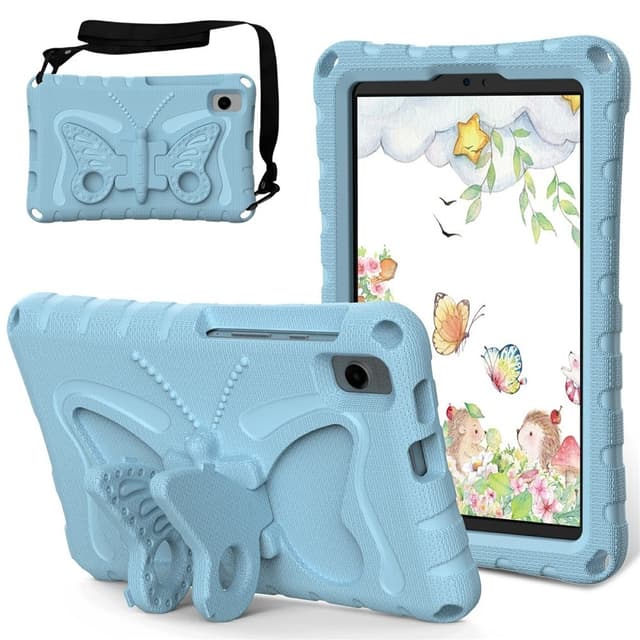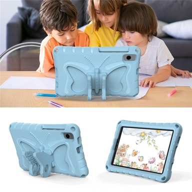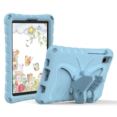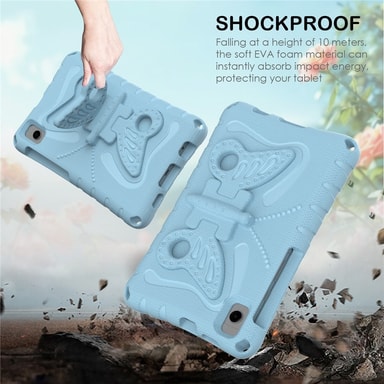 Butterfly EVA on kestävä ja lapsiystävällinen tablettisuoja, joka on valmistettu myrkyttömästä, pehmeästä EVA-materiaalista. Se istuu tiiviisti laitteen ympärille ja suojaa tehokkaasti päivittäiseltä kulumiselta. Vahvistettu kehys vaimentaa iskuja, tehden siitä ihanteellisen aktiiviseen käyttöön lapsille tai vaativiin olosuhteisiin. Ainutlaatuinen perhosen muotoinen jalusta kääntyy ja taittuu helppoa katselua ja handsfree-käyttöä varten. Korotetut reunat suojaavat näyttöä ja kameran linssejä. Säädettävä ja irrotettava olkahihna lisää kannettavuutta.