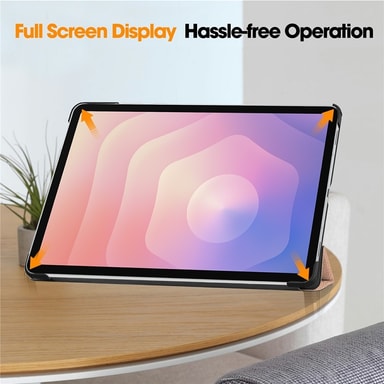 Tyylikäs ja toiminnallinen kotelo, joka on valmistettu korkealaatuisesta PU-nahasta ja PC-materiaalista, tarjoten optimaalisen näytönsuojan ja pitkäkestoisen kestävyyden. Älykäs taitettava jalustatoiminto mahdollistaa mukavan katselu- ja kirjoituskulman, parantaen käyttökokemusta. Tarkasti sijoitetut leikkaukset takaavat helpon pääsyn kaikkiin portteihin ja painikkeisiin ilman, että koteloa tarvitsee poistaa. Trifold tarjoaa kattavan suojan päivittäistä kulumista, naarmuja ja jälkiä vastaan, pitäen tablettisi huippukunnossa.