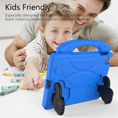 Uniikki muotoilu, jotta tablettia on helppo kantaa ympäriinsä, taitettavat tuet, jotta voit asettaa sen pystyyn.