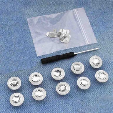 Säädä farkkusi muotoa hetkessä tällä 10 farkkunapin pakkauksella. Ne on valmistettu tukevasta sinkkiseoksesta ja ne on helppo sekä asentaa että irrottaa, joten ne sopivat täydellisesti tilapäisiin muutoksiin.Tutustu ominaisuuksiin