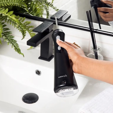 Waterpik Cordless Plus – kompakti hammasvälisuihkulaite, jossa on 360° kääntyvä suutinTutustu ominaisuuksiin
