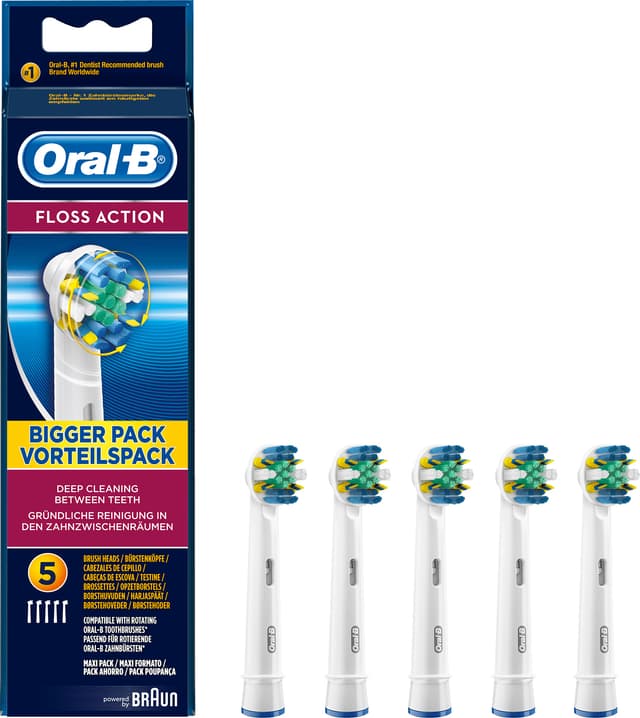 Oral-B FlossAction -vaihtoharja edistää hampaiden puhtautta ja ikenien terveyttä. Hammasharja ilmoittaa, milloin harjaosa tulee vaihtaa. Harja ympäröi koko hampaan tehokasta ja syvää puhdistusta varten. Kuppimainen muotoilu poistaa plakkia tehokkaasti ja hieroo ikeniä hellävaraisesti.