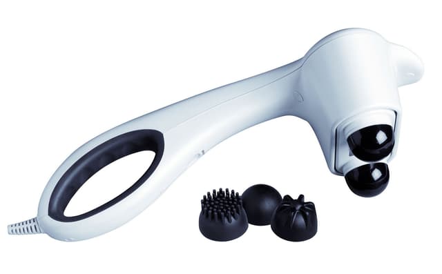 Säädä hieronnan voimakkuutta välillä 1-5. Laitteessa on 4 hierontaohjelmaa ja 2 asetusta: hieronta sekä hieronta infrapunalämmöllä. 4 hierontaosaa ja kuminen kädensija.