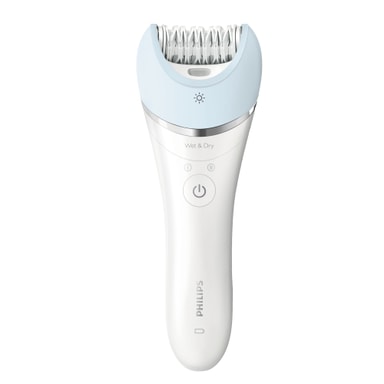 Philips Satinelle Advanced -epilaattorin leveä epilointipää mahdollistaa tarkan ja entistä nopeamman epiloinnin. Laitteessa on kätevä valo ja sitä voidaan käyttää sekä kuivalla että kostealla iholla.