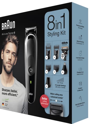 Braun Multi -trimmeripakkausken avulla huolehdit kaikista parranhoitotarpeistasi. 100 minuutin käyttöajan, tylsymättömien terien ja monipuolisten muotoiluosien ansiosta voit helposti muotoilla partasi tai hiuksesi juuri kuten itse haluat.Tutustu ominaisuuksiin