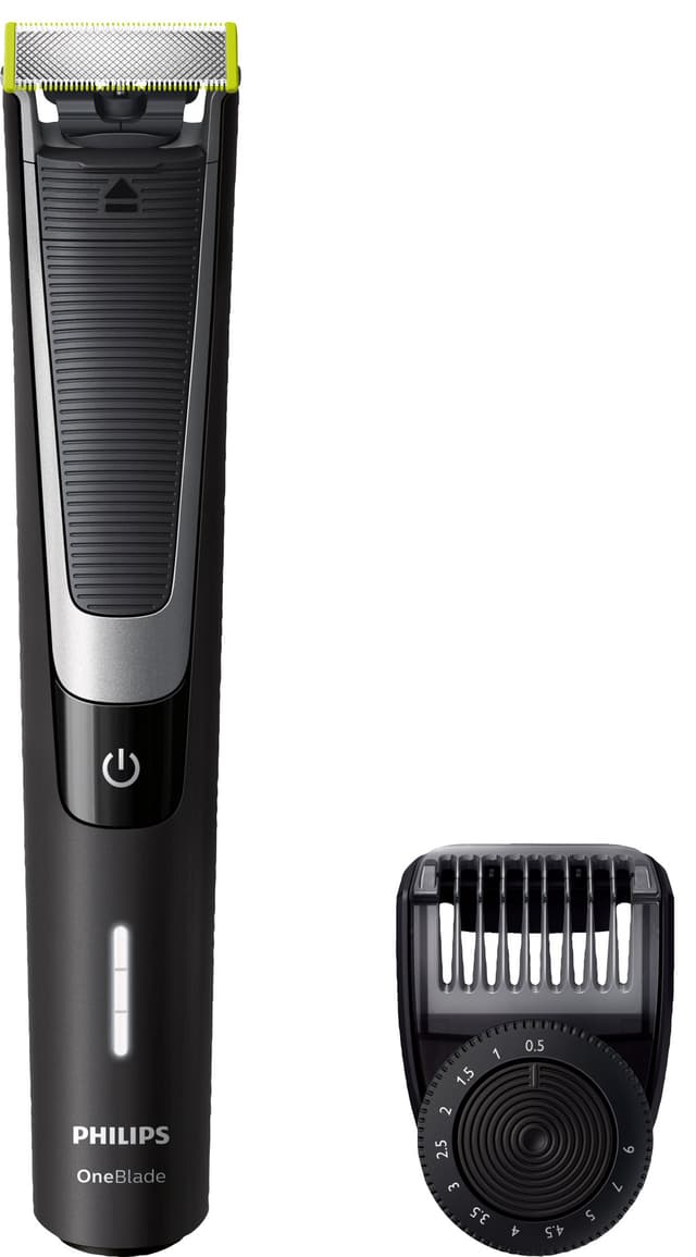 Philips OneBlade Pro QP6510/20 on ainutlaatuinen hybridipartatrimmeri, jolla trimmaat, muotoilet ja ajat parran. OneBlade seuraa kasvojen piirteitä, mikä tekee ajamisesta tai trimmauksesta tehokasta ja miellyttävää kaikilla ihoalueilla. OneBlade Pro:ssa on säädettävä ohjauskampa, jonka 12 pituusasetuksen ansiosta voit kokeilla erilaisia partatyylejä.