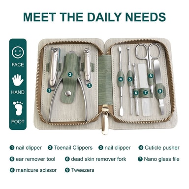 Valmistettu korkealaatuisesta ruostumattomasta teräksestä ja sinkkiseoksesta, mikä takaa pitkäkestoisen suorituskyvyn. Täydellinen kuolleen ihon poistamiseen, sisäänkasvaneiden kynsien hoitoon ja kovettumien poistamiseen. Tämä setti on suunniteltu kompaktiksi ja kannettavaksi, joten se on helppo kuljettaa melkein missä tahansa käsilaukussa tai olkalaukussa.