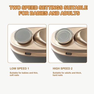 Hiljainen ja tehokas: Sähköinen kynsileikkuri toimii hiljaisesti ja vähäisellä tärinällä varmistaen mukavan ja stressittömän kynsienhoitokokemuksen. Sen kaksi nopeusasetusta mahdollistavat räätälöidyn leikkauksen ja kiillotuksen, jotka vastaavat erilaisia kynsien paksuuksia ja henkilökohtaisia mieltymyksiä. Yhden painikkeen käyttö yksinkertaistaa prosessia tehden siitä käyttäjäystävällisen kaikille. Pitkäkestoinen akku tarjoaa pidemmän käyttöajan poistaen tarpeen toistuvalle lataukselle. Tämä laite on suunniteltu henkilöille, jotka arvostavat hiljaista ja tehokasta toimintaa tarjoten saumattoman ja nautinnollisen kynsienhoitorutiinin. Hiljaisuuden, säädettävien nopeuksien ja helpon käytön yhdistelmä tekee siitä erinomaisen valinnan niille, jotka etsivät vaivatonta kynsienhoitoratkaisua. Koe täydellisesti manikyyriin leikattujen kynsien mukavuus ilman perinteisten leikkureiden melua ja tärinää.