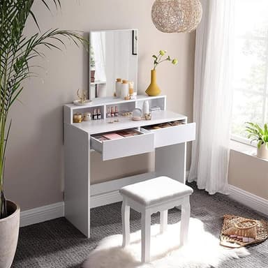Pukupöytä peilillä ja 2 laatikolla - ValkoinenTutustu ominaisuuksiin