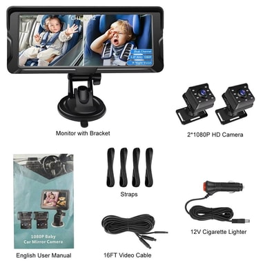 【Kaksoiskamerasuunnittelu】 Koe terävä 1080P HD -resoluutio kaksoiskameroilla, jotka mahdollistavat kahden lapsen tai eri alueiden samanaikaisen valvonnan takapenkin täydellisen peiton takaamiseksi.