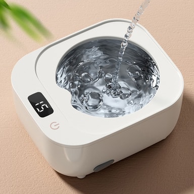 Tehokas puhdistus: Ultraäänipuhdistin käyttää 48 kHz:n korkeataajuusvärähtelyä tuottaakseen voimakkaita kavitaatiokuplia. Nämä kuplat tunkeutuvat jopa vaikeapääsyisimpiin kohtiin hammasraudoissasi, pidikkeissäsi, hammasproteeseissasi, koruissasi ja muissa pienissä esineissäsi. Tämä prosessi poistaa tehokkaasti tahrat, roskat ja hajut varmistaen perusteellisen ja hygieenisen puhdistuksen. 48 000 kertaa sekunnissa tapahtuva värähtely irrottaa lian ja lian jättäen esineesi kimalteleviksi ja raikkaiksi. Se on täydellinen suuhygienian ylläpitämiseen ja lisävarusteiden pitämiseen moitteettomassa kunnossa. Säännöllinen käyttö estää kertymistä ja pidentää hammaslaitteiden ja korujen käyttöikää.