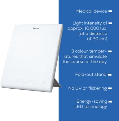 Beurer TL45 -kirkasvalolamppu jäljittelee luonnollista auringonvaloa ja auttaa mukautumaan paremmin työskentely- ja lepoaikoihin. Kompaktissa kirkasvalolampussa on 3 värilämpötila-asetusta, LED-valo ja kosketusohjaus.Tutustu ominaisuuksiin