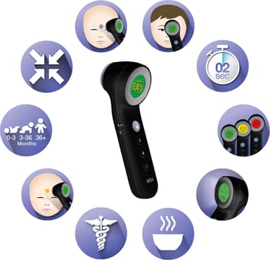 Braun-kuumemittari helpottaa lasten kuumeen mittaamista, sillä siinä on sekä kosketus-, että kosketukseton mittaus. Kumpikin mittaustila tarjoaa erittäin tarkat tulokset. Kuumemittari on varustettu myös Age Precision -ominaisuudella.Tutustu ominaisuuksiin