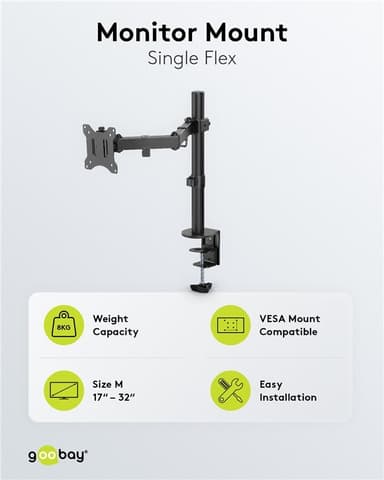 Näytön kiinnitys antaa sinulle ergonomisen lisän työpaikalle. Sisäänrakennettu, korkeussäädettävä VESA-levy mahdollistaa näytön erittäin joustavan kallistamisen, kääntämisen tai heiluttamisen. Kiinnitä pidike pöytäpuristimella, jonka voit tarvittaessa irrottaa ilman jäännöksiä.