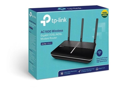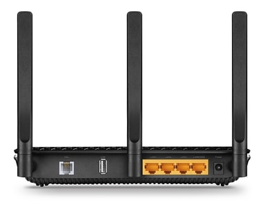 TP-Link AC1600 ADSL- ja VDSL-modeemi sekä langaton reititin, 4 GBLAN-porttia, 2,4/5 GHz, 3 irrotettavaa antennia, musta