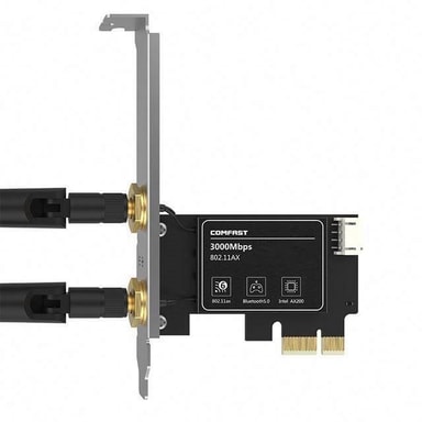 Verkkokortilla on nopea Internet-yhteys (802.11ax), jonka avulla voit surffata jopa nopeammin. Se koostuu kestävästä metallimateriaalista, siinä on iso emolevy, se haihduttaa lämpöä ja sillä on tehokas jäähdytysteho. Siirrä nopeasti Bluetoothin kautta viimeisimmällä versiolla, Bluetooth 5.0, ja integroitu antenni antaa laitteelle siirtonopeuden 2974 Mbit / s.