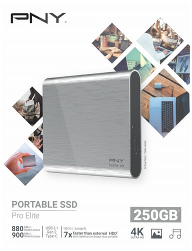 - Kannettava PNY Pro Elite -SSD-muisti, 250 GB