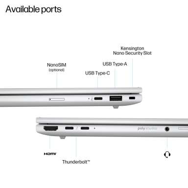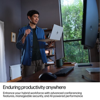 Alumiinirakenne ja MIL-STD-810H-testaus tarjoavat sekä tyylikkyyttä että kestävyyttä. Vain 1,39 kg paino tekee laitteesta helposti mukana kulkevan. Taustavalaistu HP Premium Keyboard -näppäimistö ja tarkka kosketuslevy parantavat käyttömukavuutta, ja 5 MP IR-yksityisyyskamera tukee korkealaatuista videoviestintää sekä turvallista kasvojentunnistuskirjautumista.