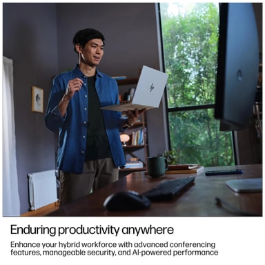 Alumiinirakenne ja MIL-STD-810H-testaus tarjoavat sekä tyylikkyyttä että kestävyyttä. Vain 1,69 kg paino tekee laitteesta helposti mukana kulkevan. Taustavalaistu HP Premium Keyboard -näppäimistö ja tarkka kosketuslevy parantavat käyttömukavuutta, ja 5 MP IR-yksityisyyskamera tukee korkealaatuista videoviestintää sekä turvallista kasvojentunnistuskirjautumista.